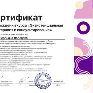 Меня зовут Вероника Лебедева, я экзистенциальный психолог и профориентолог.